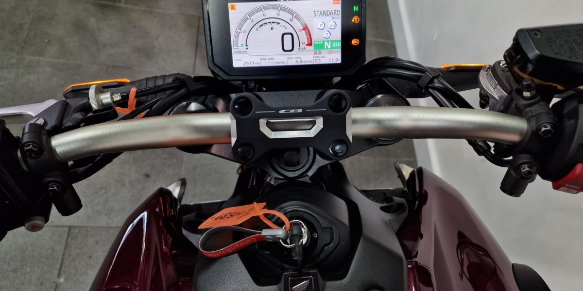 2023 Honda CB1000R, very low mileage of 2,977 fitted with meter visor, rad guard, heated grips, CB clamp, bar end mirrors, quickshifter, tail tidy, Arrow silencer, frame bungs, rear seat cowl and all original parts supplied. A well rounded bike praised for its powerful and user friendly engine, comfortable yet aggressive neo-sport-cafe styling and high quality finish. Vin 401068. Check out our website to find out more, view our finance deals and submit an application. . Red 2 seats. The North West’s Finest Family Run Business