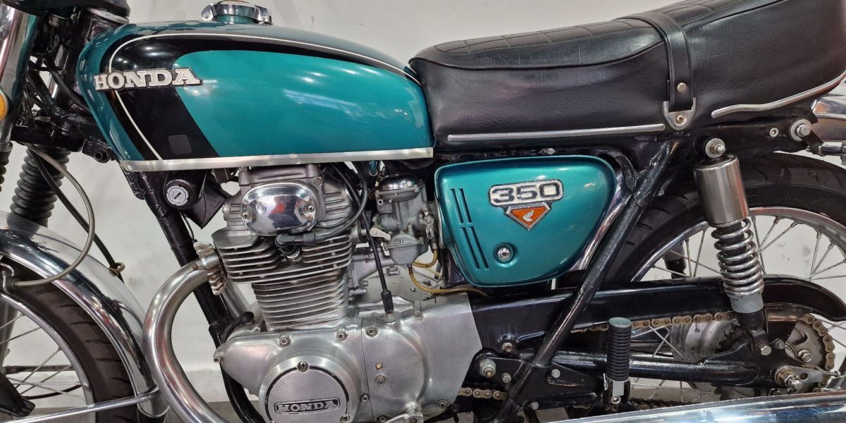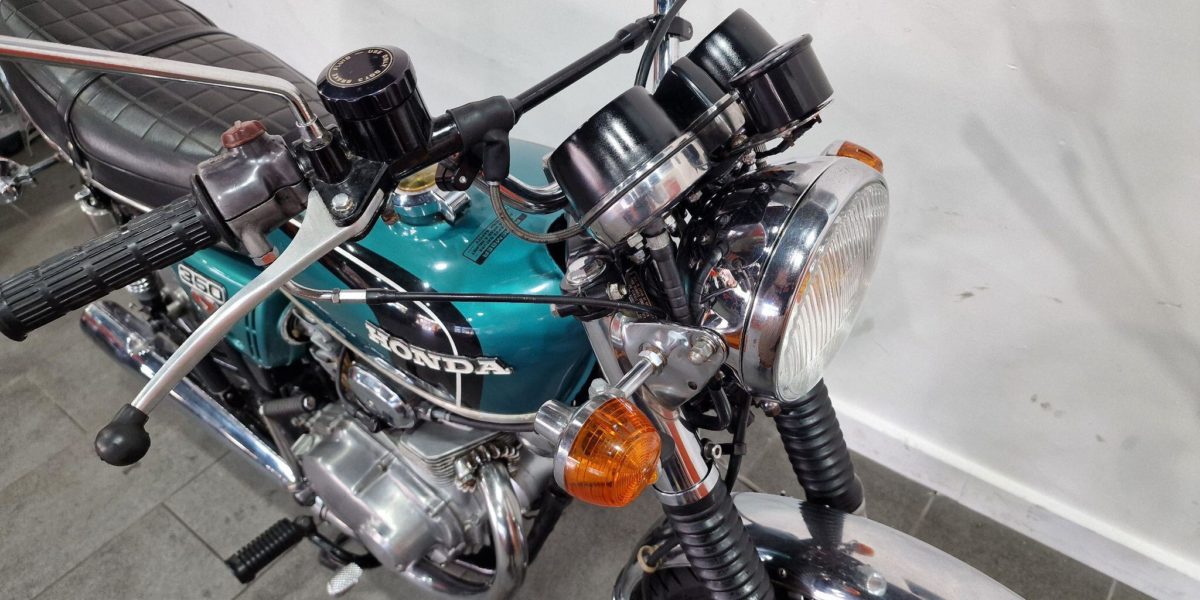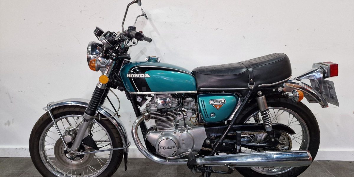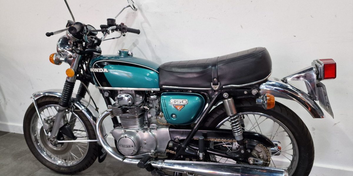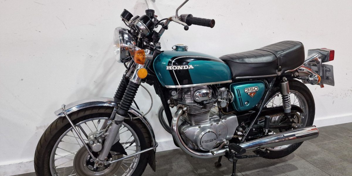 1974 Honda CB350, lovely clean example, electric start, lightly restored but nice patina, twin cylinder, twin carbs 100mph?, chrome work good, seat good, historic vehicle registered. Vin 043028. . Blue The North West’s Finest Family Run Business