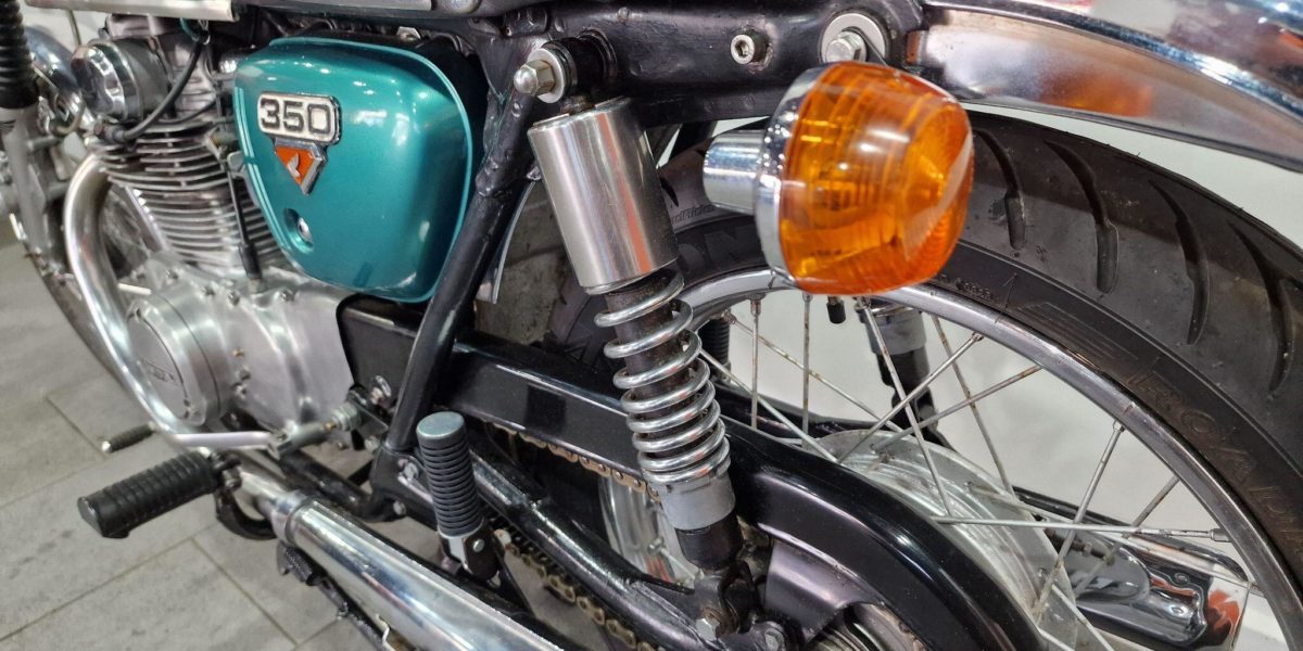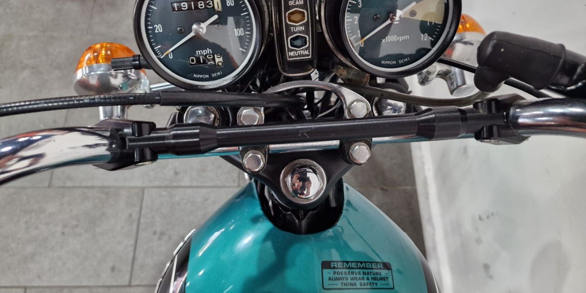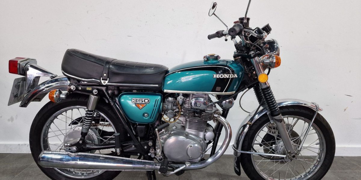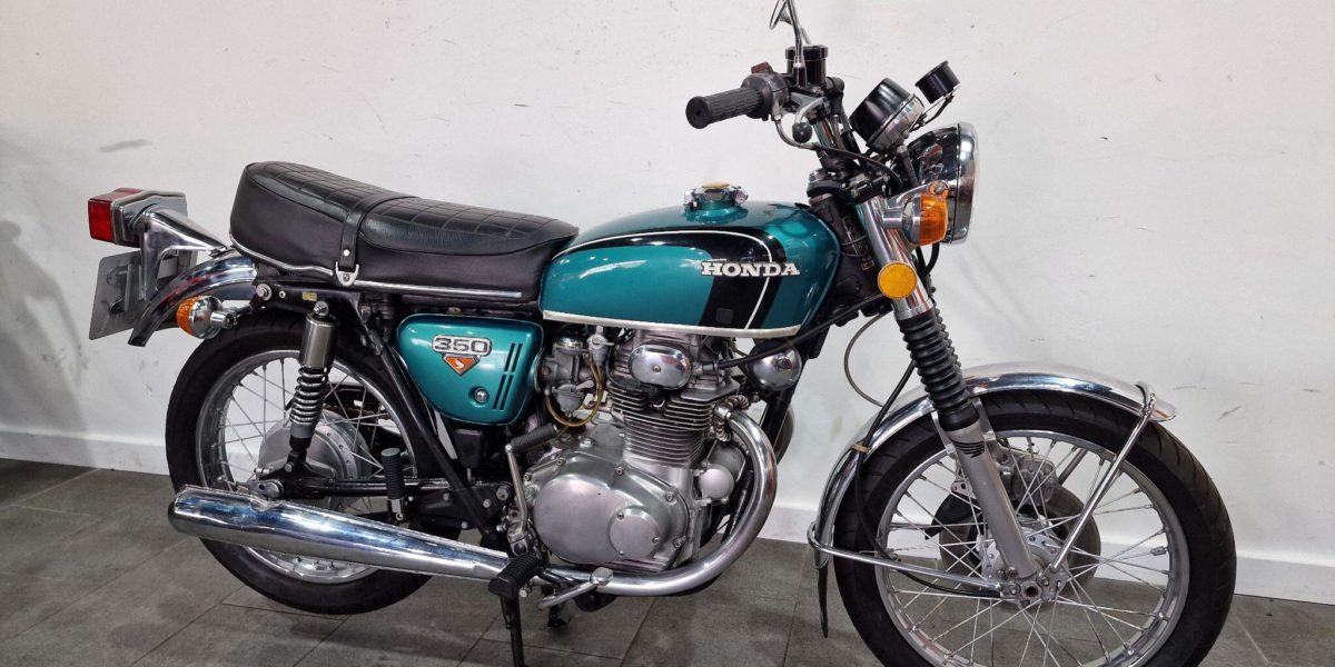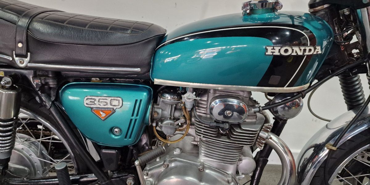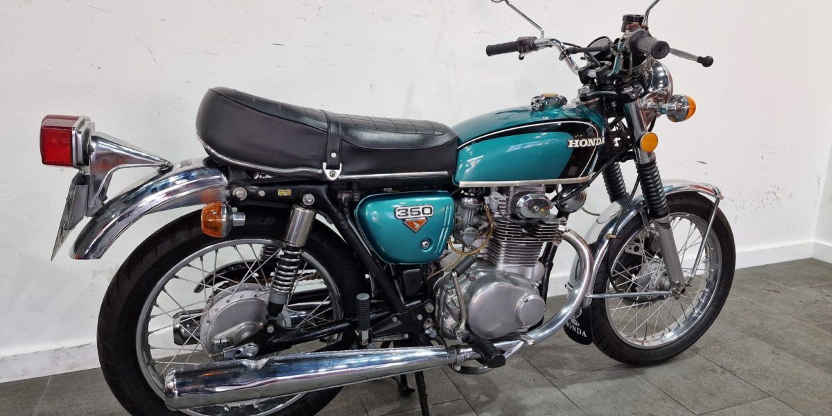 1974 Honda CB350, lovely clean example, electric start, lightly restored but nice patina, twin cylinder, twin carbs 100mph?, chrome work good, seat good, historic vehicle registered. Vin 043028. . Blue The North West’s Finest Family Run Business
