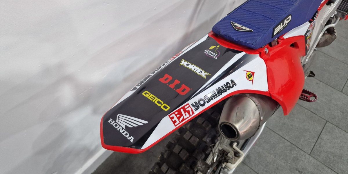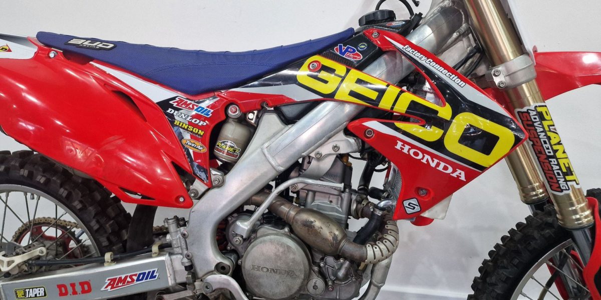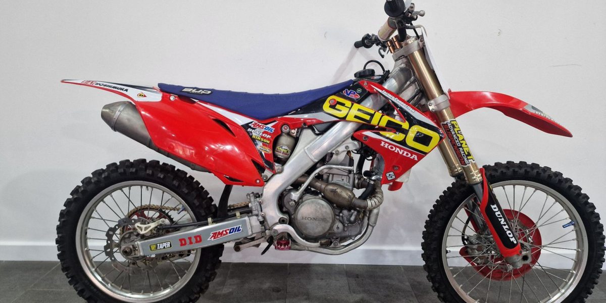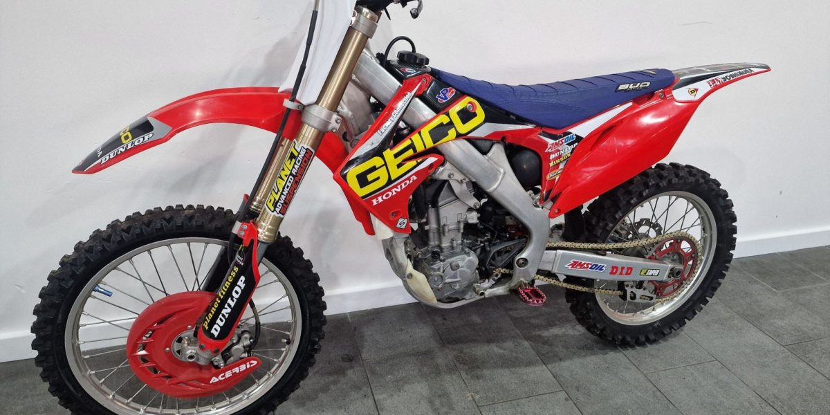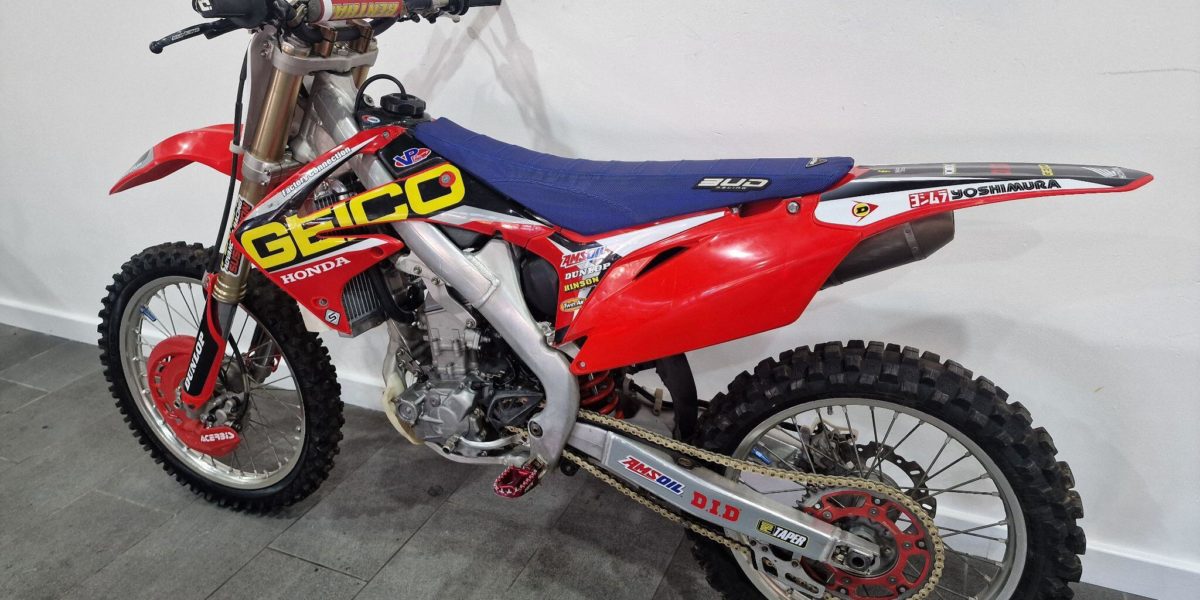 2013 Honda CRF250R, Geico graphics, RFX foot pegs, Renthal twin bars, carbon tank guard, fuel injection and titanium exhaust. Great starter bike. Vin 802646. . Red 1 seats. The North West’s Finest Family Run Business