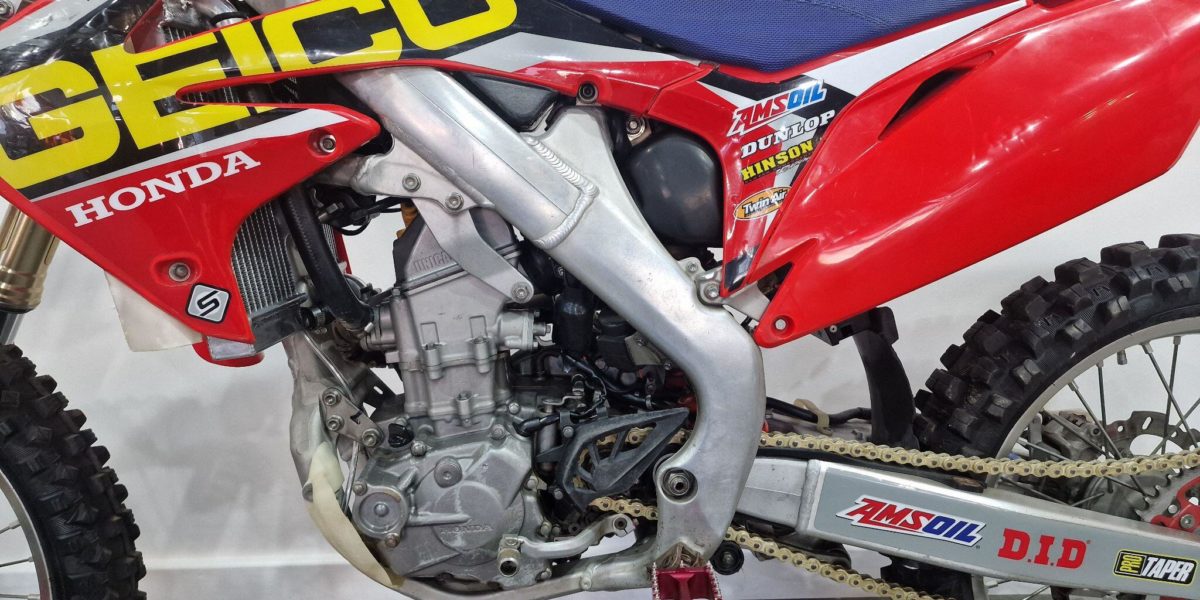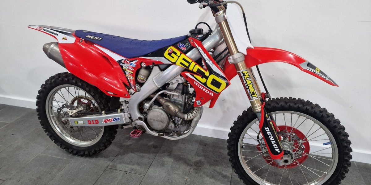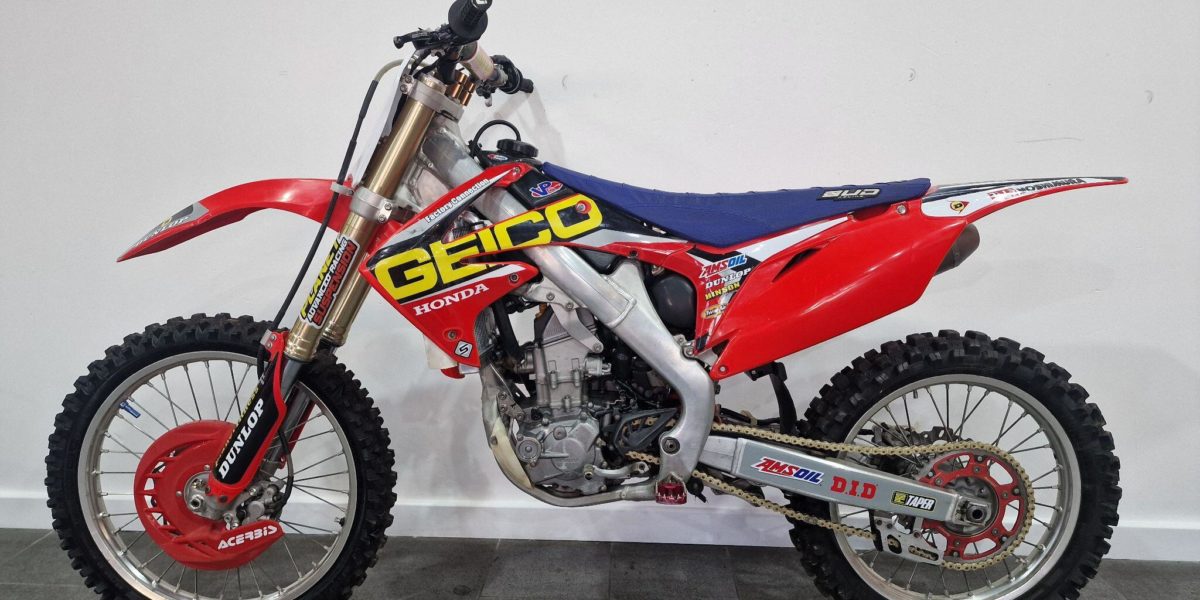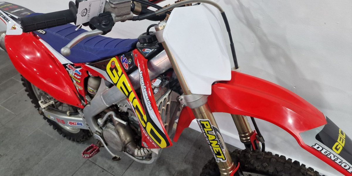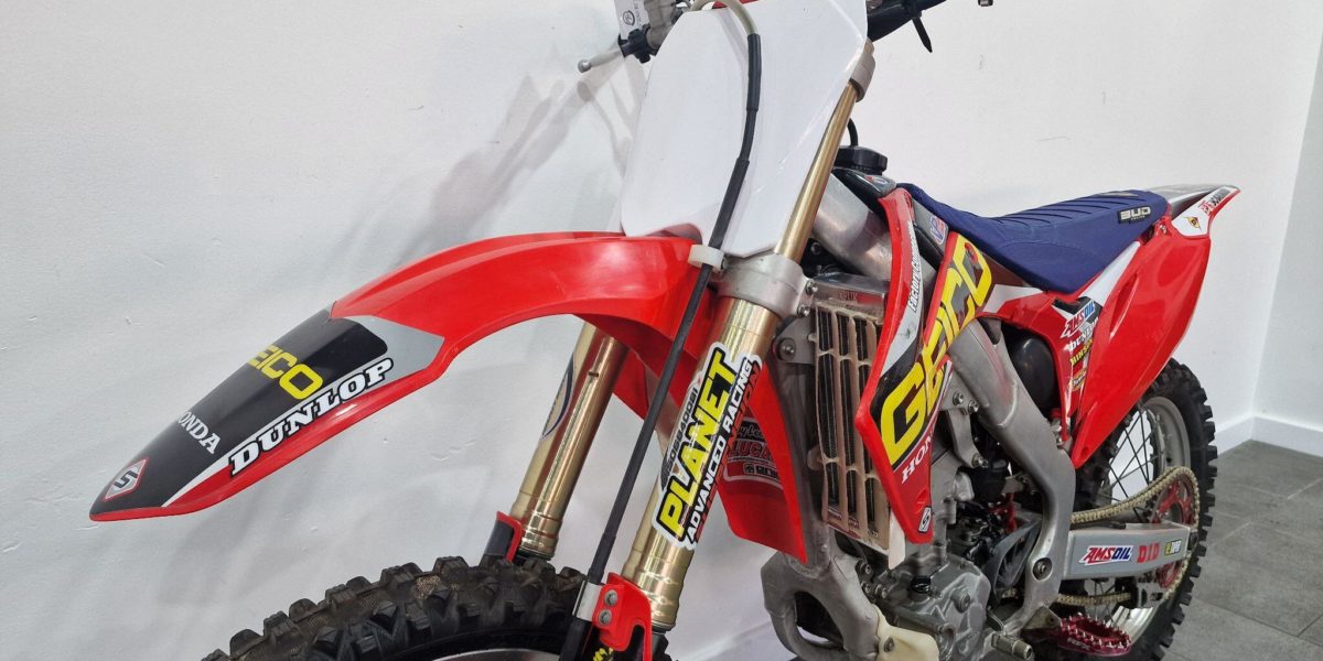 2013 Honda CRF250R, Geico graphics, RFX foot pegs, Renthal twin bars, carbon tank guard, fuel injection and titanium exhaust. Great starter bike. Vin 802646. . Red 1 seats. The North West’s Finest Family Run Business