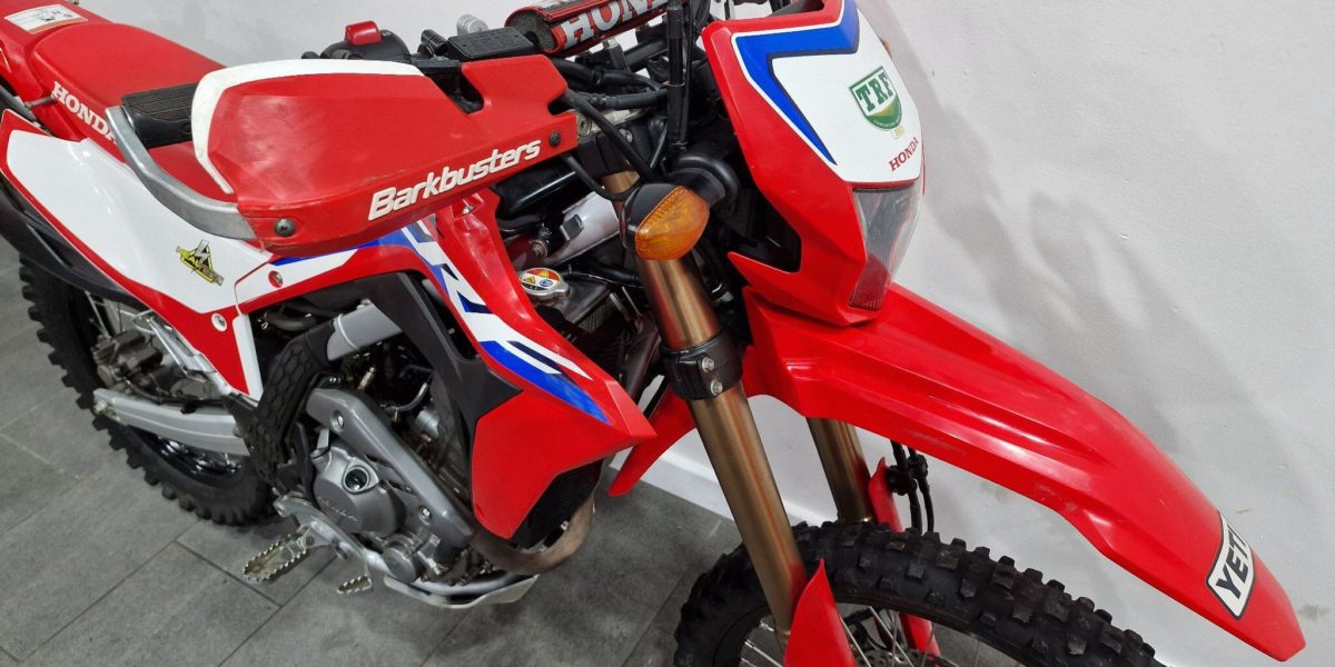 2022 Honda CRF300L, only 2240 miles, sold by us new with only one previous owner. Equipped with lower Barkbuster handguards, YSS rear shock, Michelin Enduro Medium tyres, rad guard and tail tidy. Vin 007410. . Red 2 seats. The North West’s Finest Family Run Business