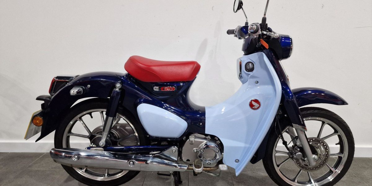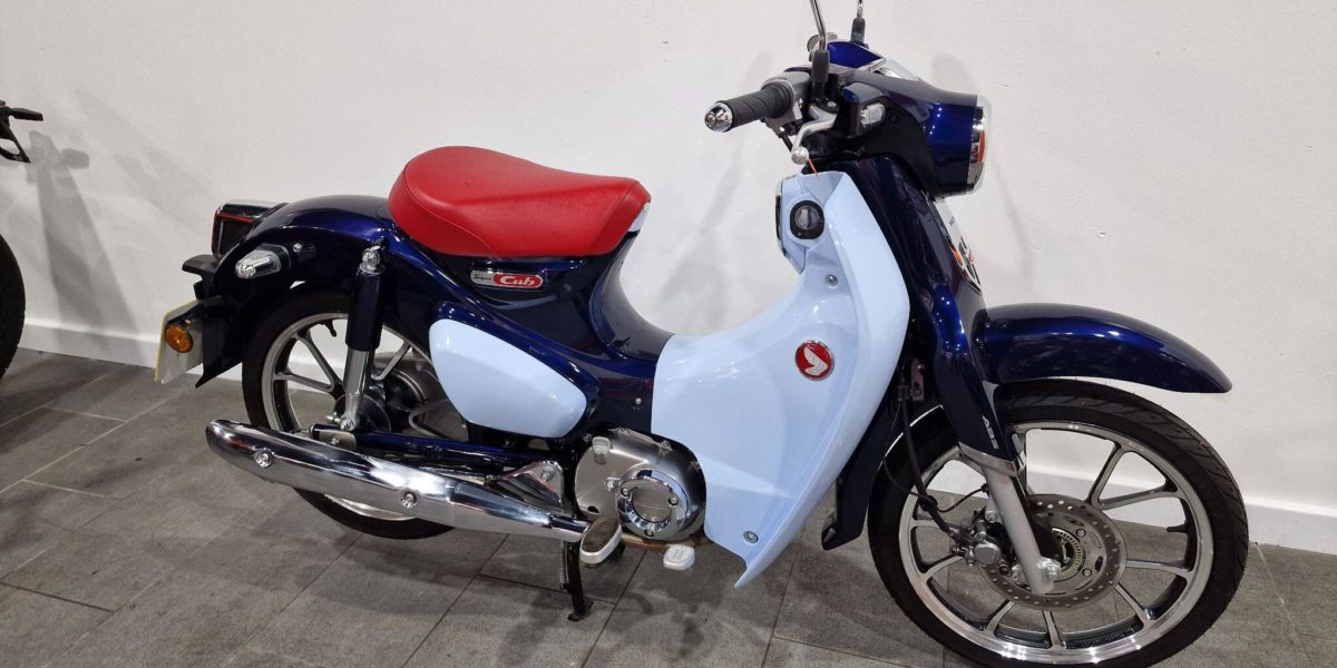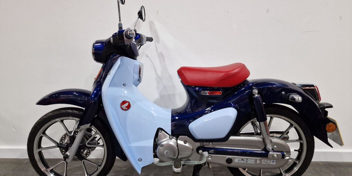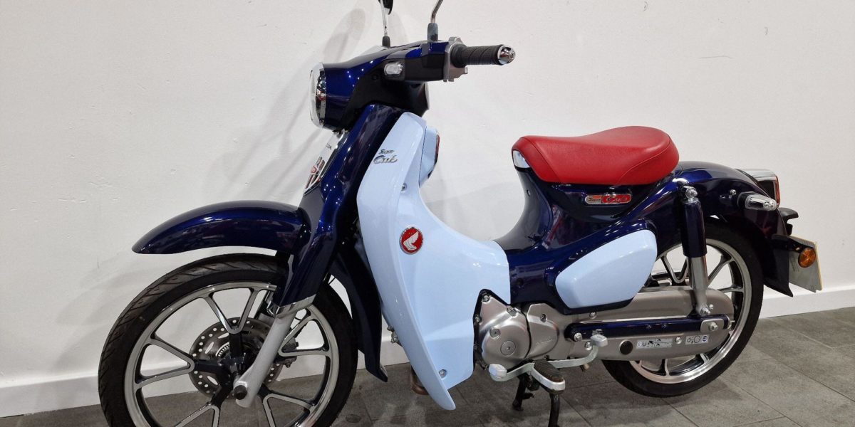2020 Honda C125 Super Cub, with a very low mileage of 117 this bike is a charming, stylish and immensely fun urban commuter, blending retro design with modern technology. Incredibly cheap to run with typical Honda durability. Vin 001827. . Blue 1 seats. The North West’s Finest Family Run Business