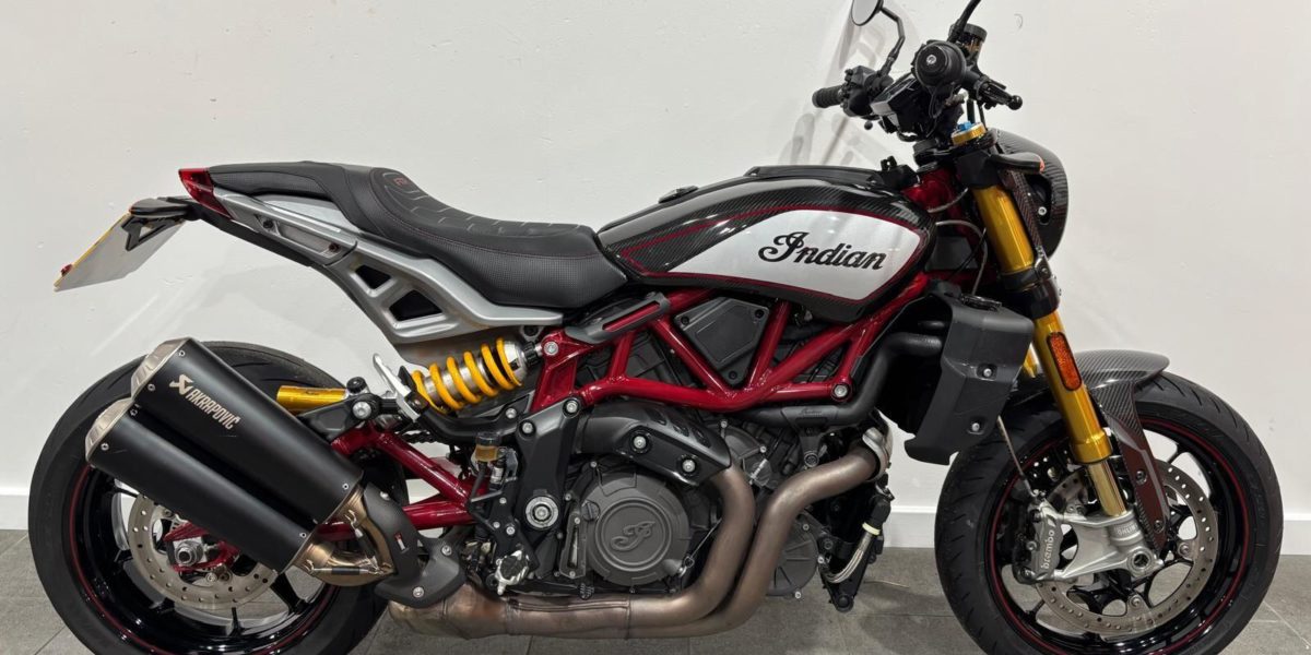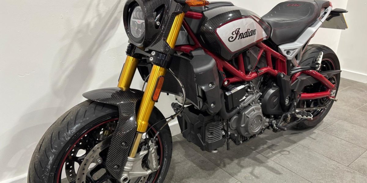 2022 Indian FTR1200, Akrapovic silencers, Ohlins suspension, TFT screen, carbon fibre mudguard, tank & cowl, R&G rad guards and paddock stand bobbins. Sharp torquey motor, flat tack inspired styling. Blends cruiser and sport naked characteristics. Limited number 1622. Vin 018910. . Black 2 seats. The North West’s Finest Family Run Business