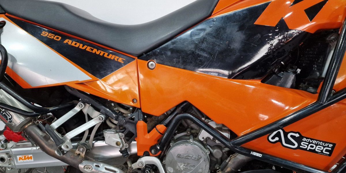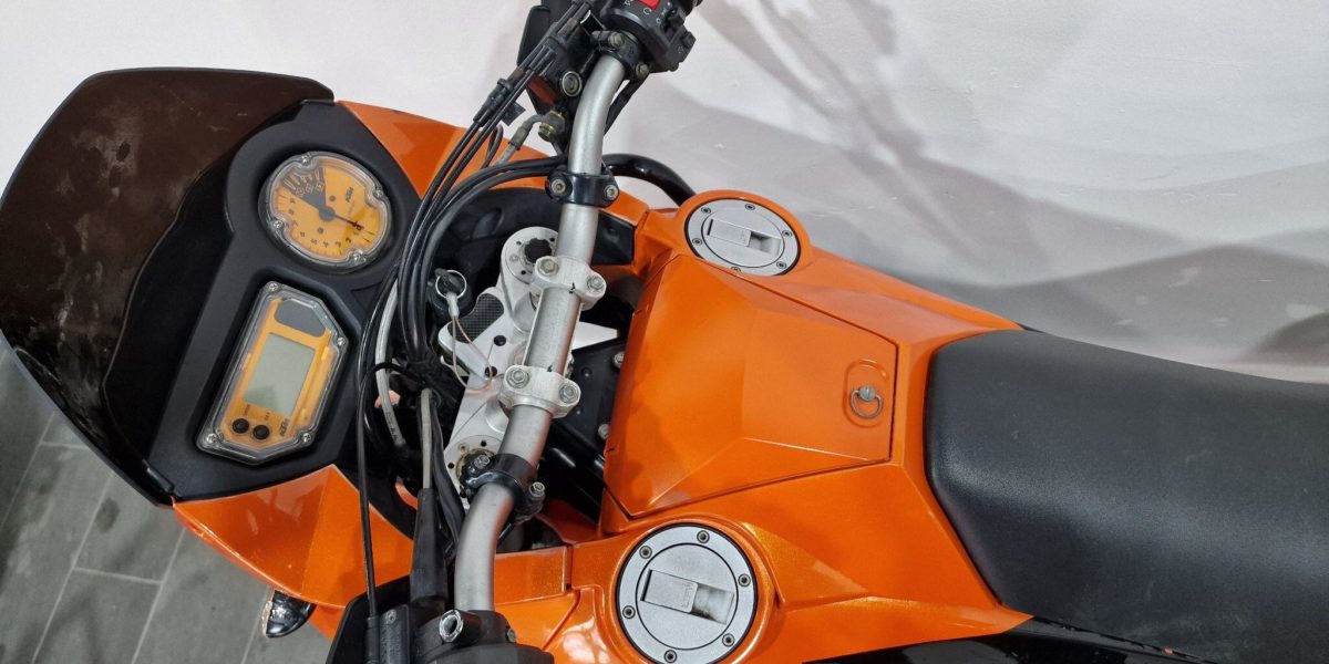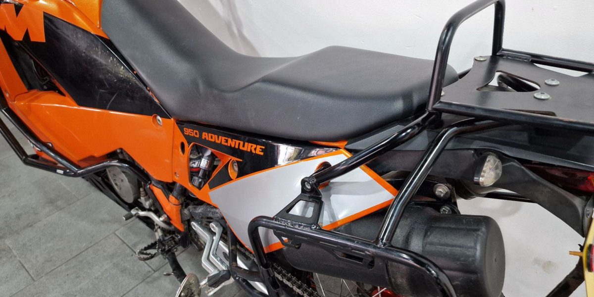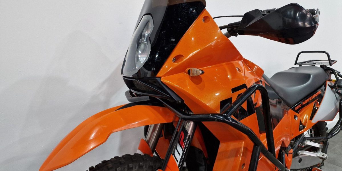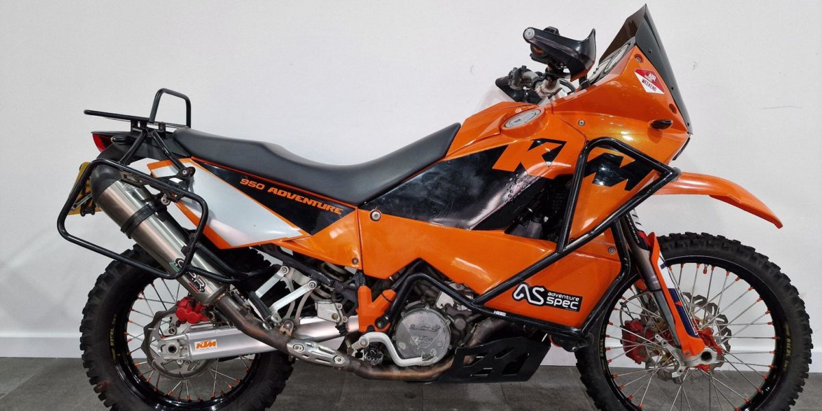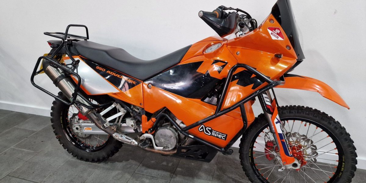 2005 KTM 950 Adventure Rally, prepared for off-road, TET, trial use. SM pro wheels with Excel rims, GPR 2-1 ‘DAKAR’ exhaust, full engine bars, full bx box, Gobi luggage, low screen (original included) alloy bash plate (original included), relocated battery and fuel pump. Vin 909787. . Orange The North West’s Finest Family Run Business